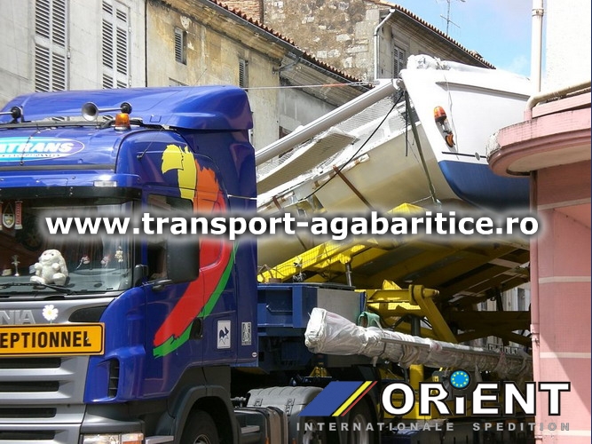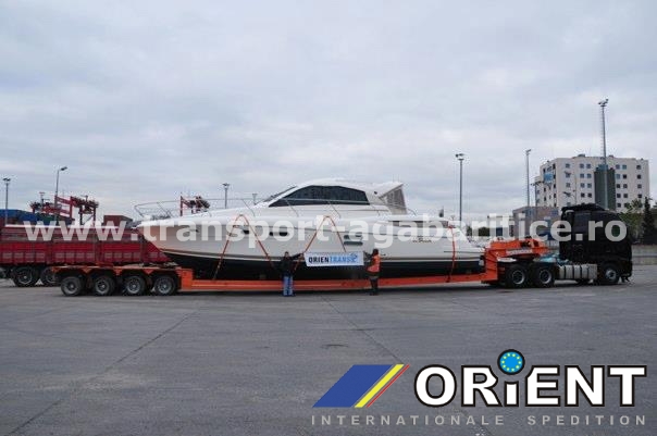 ORIENT® efectuează servicii de transport agabaritic barci de mari dimensiuni, fiind una dintre singurele companii din România acreditată să efectueze transport agabaritic de marfă ÎN TOATE ŢĂRILE Uniunii Europene, INCLUSIV ANGLIA, DEŢINÂND PERMISE DE TRANSPORT PENTRU ÎNTREG ANUL (Anglia, Italia, Spania, Austria, Germania, Belgia, Ungaria).